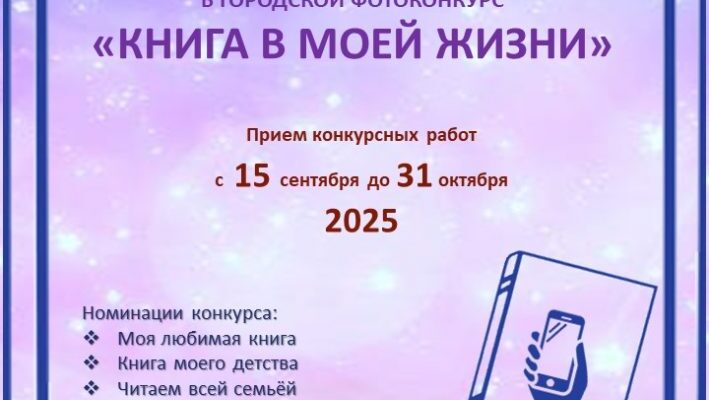 С 15 сентября по 31 октября 2025 года МБУ «Централизованная библиотечная система» приглашает семьи с детьми от 3 до 15 лет и старше принять участие в городском фотоконкурсе «Книга в моей жизни». На конкурс принимаются фотографии участника с книгой в следующих номинациях::