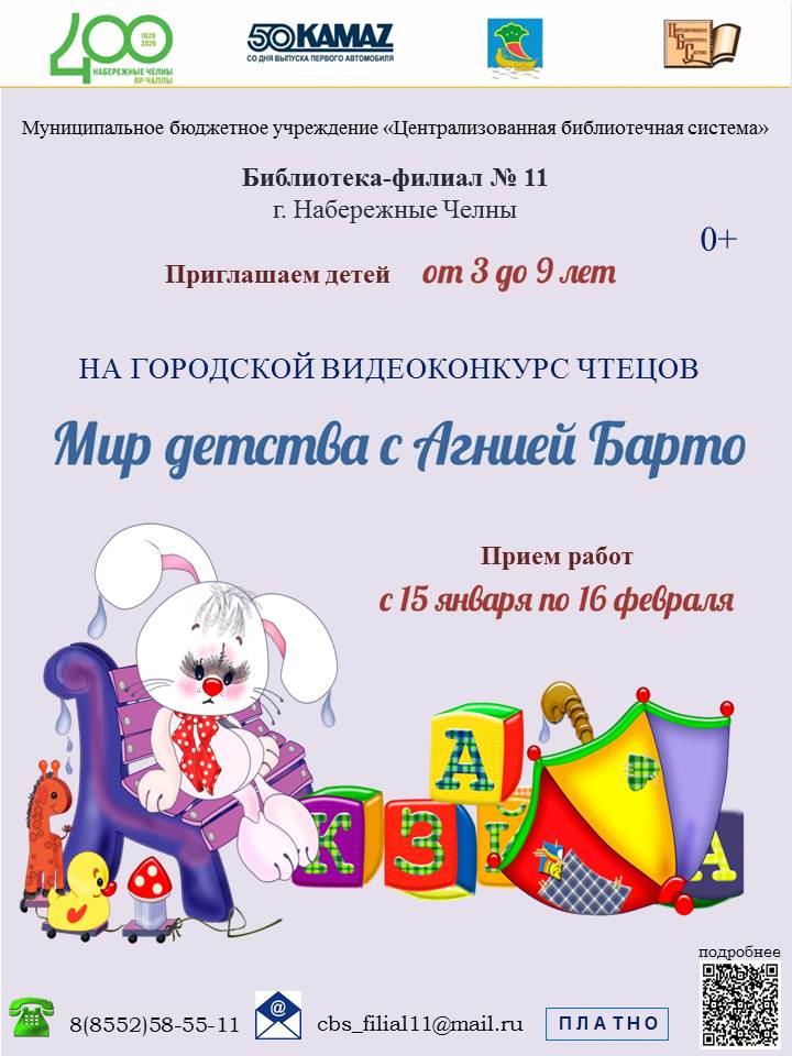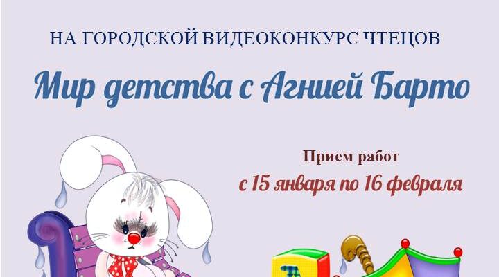 С 15 января по 16 февраля 2026 года МБУ «Централизованная библиотечная система» приглашает детей от 3 до 9 лет принять участие в городском видеоконкурсе чтецов «Мир детства с Агнией Барто».