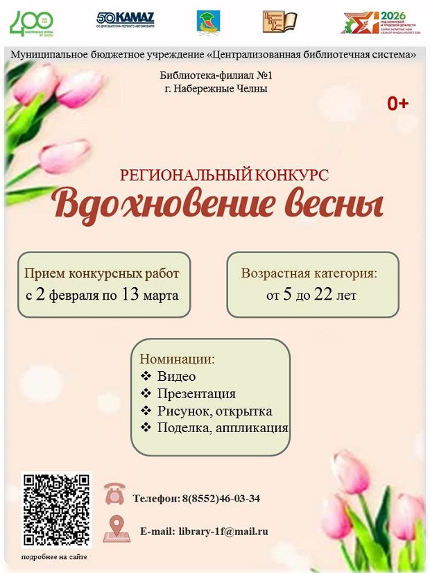 Положение конкурса. https://библиотека-челны.рф/konkursy-i-akcii/regionalnye-gorodskie-konkursy-i-akczii/regionalnyj-konkurs-vdohnoveniya-vesny-0