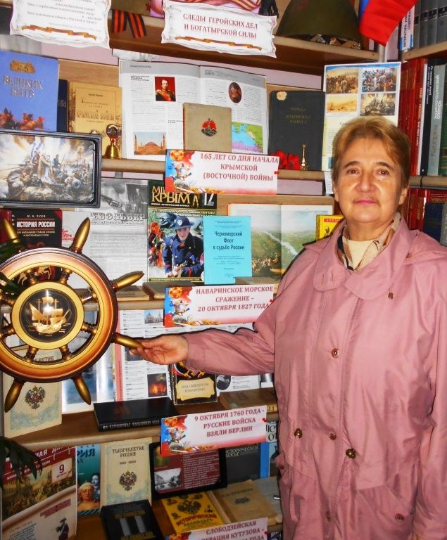 Краеведческие, исторические, периодические издания, представленные на выставке, раскрывают страницы героических побед русского оружия. Особый интерес у читателей вызывает оформление выставки, украшением и гордостью которой стали предоставленные волонтерами библиотеки «корабельный штурвал», защитная каска, парусник, сувенирные статуэтки Памятника затонувшим кораблям Севастополя и старинной пушки.