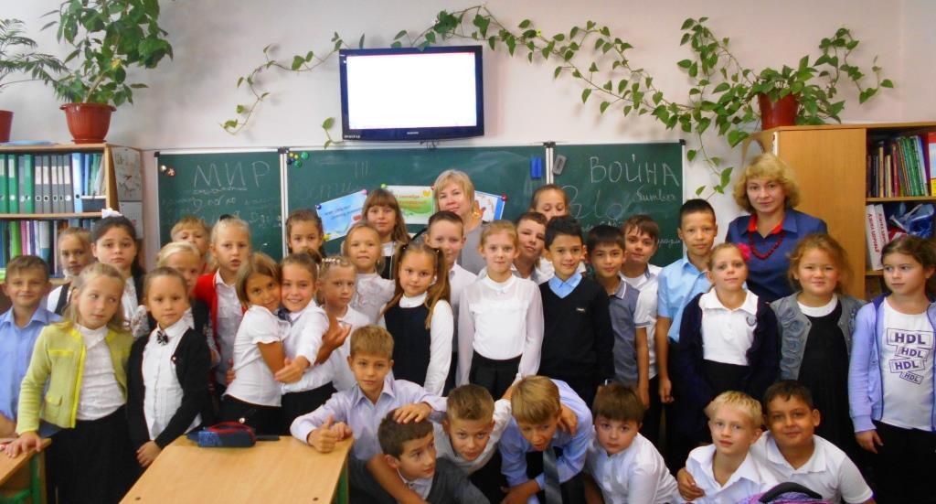 «Мы с вами – счастливые люди. Мы каждый день просыпаемся, нам светит солнце, над нами мирное небо. И мы надеемся, что так будет всегда! На самом деле, мир очень хрупок. И сегодня в мире идут военные действия, гибнут люди, матери теряют детей», — эти слова стали началом уроков. Участники мероприятия – учащиеся младшей школы. И эти дети уже знают о страшных войнах, идущих в Донбассе, Сирии, Афганистане и других горячих точках планеты.